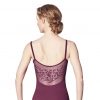 Mirellan aikuisten tanssipuku. Takana ristiin menevät olkaimet, rinnuksessa neliökoristeet.